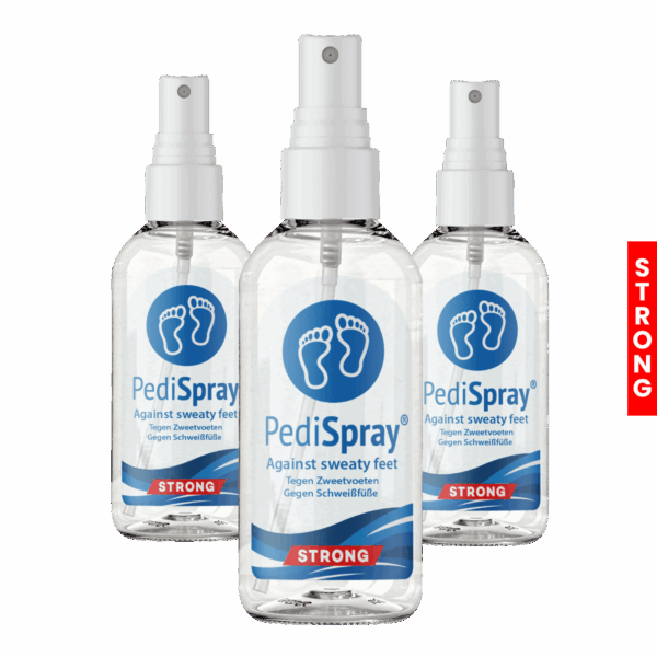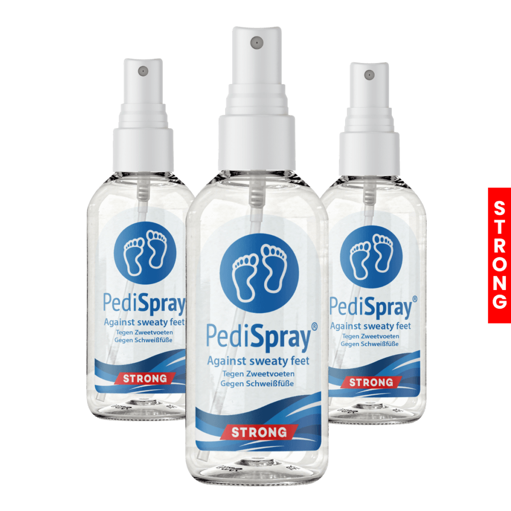 Treat stubborn sweaty feet with PediSpray®. This calms overactive sweat glands so the treated skin perspires less.